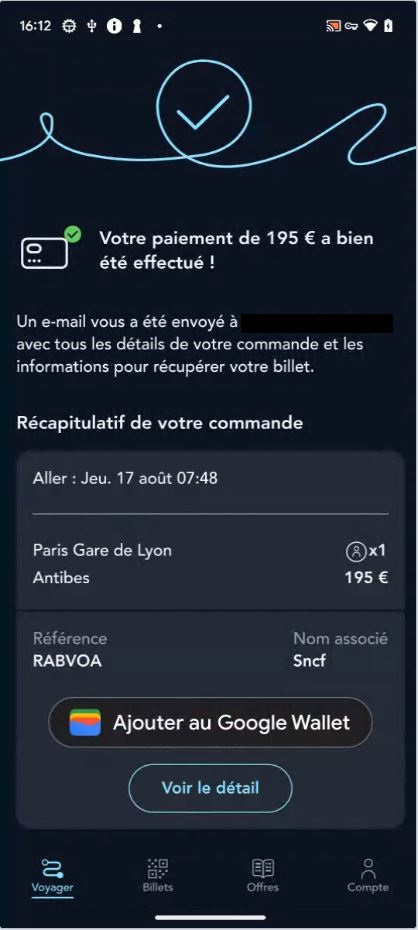 - Vous êtes redirigé sur le récapitulatif de votre commande sur SNCF Connect pour finaliser votre commande.