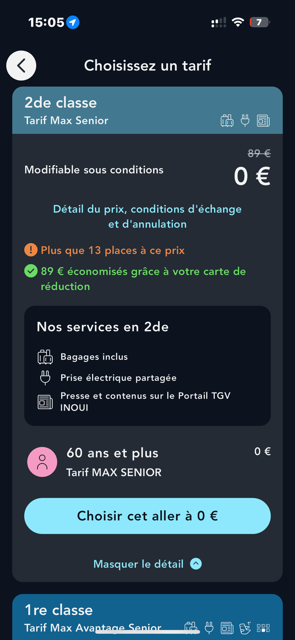 Certains trains à 0 € en période de forte affluence ne sont pas ouverts à l'abonnement MAX SENIOR