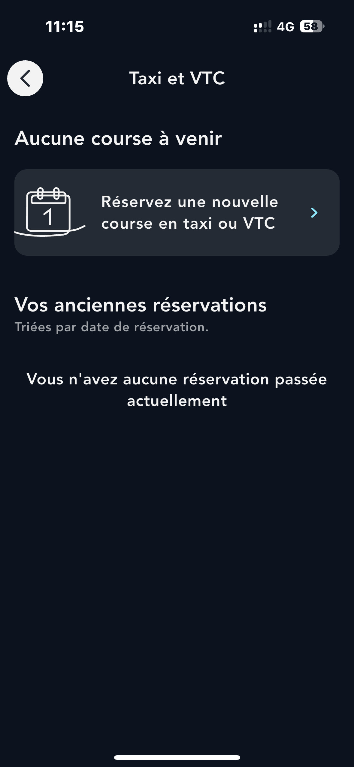 Cliquez sur "Réservez une nouvelle course en taxi ou VTC"