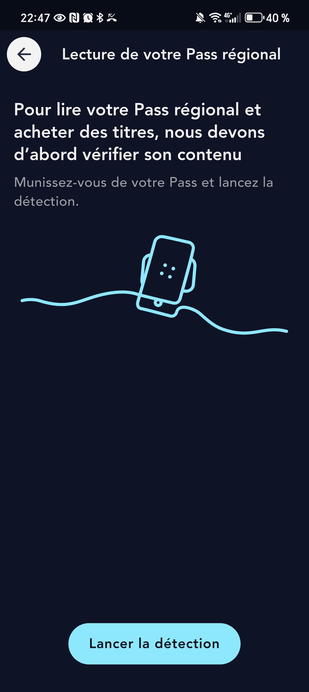 Munissez-vous de votre Pass, lancez la détection et maintenez le au dos de votre téléphone